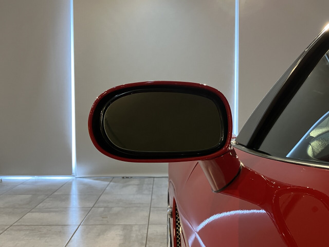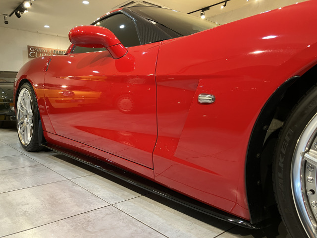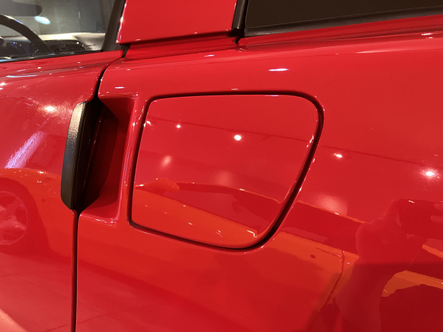 グロスブラックで仕上げられたフロントスポイラーとサイドスカート、そしてインナーブラックのヘッドライトはボディカラーのヴィクトリーレッドの差し色としてアクセントになり、