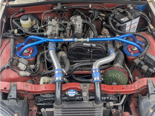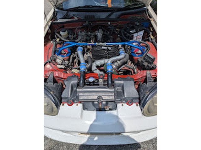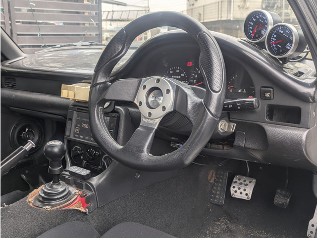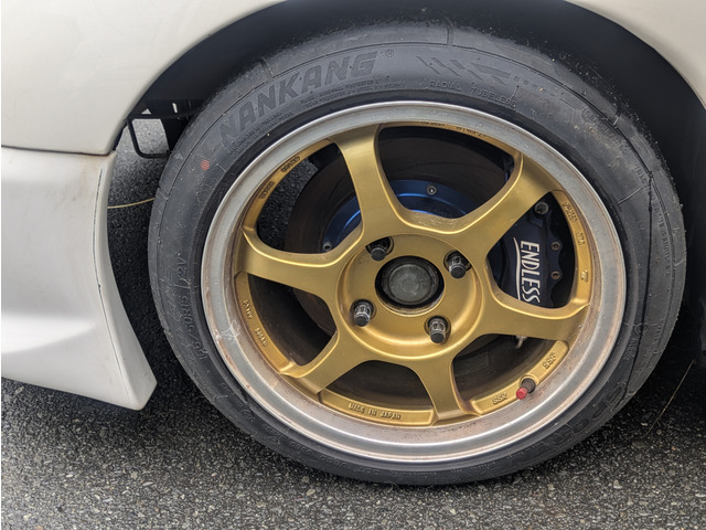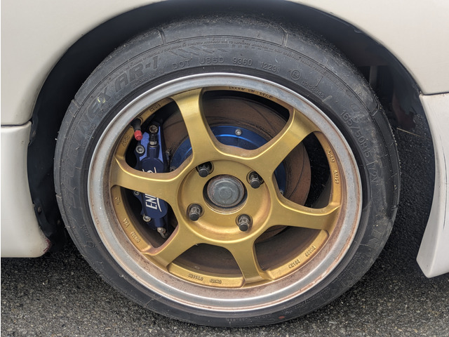 エンドレスブレーキキット(フロント)、GTウィング、エアロバンパー(フロント)、レカロフルバケットシート、MOMOレースステアリング、BLITZ車高調、アルミパイピング、スピンターンノブ、LSD装着済みです。